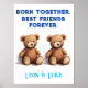 Little bears design: so cute, so unique for a twin boys nursery. "Born together. Best friends forever". Personalise with twin boys names. Cute poster in vintage design.