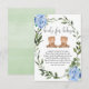 Twin boys teddy bears greenery blue books for baby enclosure card