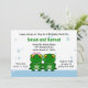 Cute green frogs that are perfect for twin girl and boy birthday invitations. Customise with your party details.