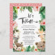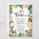 It's Twins ! Jungle Safari Animal Tropical Floral Greenery Cute Twin Baby Shower Invitation Card. Celebrate the upcoming arrival of your precious baby with this festive, chic and beautiful Invitation card. All the texts are pre-arranged for you to personalise easily and quickly with your baby shower details.