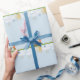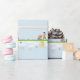 Honour the new twin mum with this sweet and cosy paper. A light blue background with a garden setting. The twins are out for a walk in the sun,