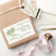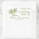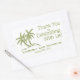 This simple but elegant wedding thank you stickers features two green palm trees with the Bride & Groom's first names and the wedding date beneath. Along side the trees are the words "thank you for celebrating with us". This could be used for wedding party favours and/or thank you gift tags. Perfect for tropical, seaside, ocean or beach weddings.