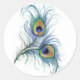 Twin Peacock Feather Pencil Drawing Button Classic Round Sticker