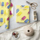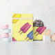 Wrapping paper features an original watercolor illustration of a row of twin pop popsicles, printed on a yellow background. A perfect summertime treat!