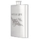 The product is a good size and came exactly as it was pictured. The lid is not attached to the flask, which could be dangerous on drunken nights... The print came out surprisingly well and looks very sharp. Would definitely recommend.
