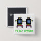 twin robots in neon colours 15 cm square badge