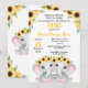 TWIN Sunflower Girls Elephant Yellow Pink Shower Invitation