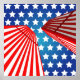 The red and white striped twin towers shoot up towards a star-filled sky.