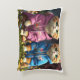 The cushion is small to medium sized. It can be washed. It is well constructed. The material used is pleasant and feels decent quality. It has a very slight plush feel which is good. It is well labelled and its care clearly stated. Theres nothing not to like about it. All in all a good item. The deduction of one star overall is due to long delays in delivery to the UK. It's not clear if this was due to Zazzle or somewhere else in the chain as I did not receive status updates of dispatch or progress. I cannot comment anymore on that other than to say that was our experience but it may not be the same for you. The printing was surprisingly close to what we were expecting. Its an art piece and on material so its hard to assess the precision of printing but it seems close to the original. The soft lines are reproductions of the original. The colour is a fair reflection of the painting. This was printed in the US and it looks like US quality. No issues.