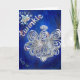 A white and silver angels rests against an indigo blue nighttime sky. A star appears to the left under the word "twinkle". Glitter on the painting gives this angel painting the magic of a shimmering twinkle. This is a great angel image to use for the holidays like Christmas or New Year's.
