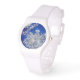 A white and silver angels rests against an indigo blue nighttime sky. A star appears to the left under the sparkly word "twinkle". Glitter on the painting gives this angel painting the magic of a shimmering twinkle. This is a great angel image to use for the holidays like Christmas or New Year's. Make customised guardian angel watch designs with your personal messages and/or photos. Use the "customise it" button. The guardian angel art makes great personalised custom wrist watch gifts!