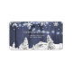 Editable text wedding address label featuring rustic shimmering lights, white snowflakes and a mountains landscape on dark blue grey barn wood background. Ideal for your winter | elegant rustic country | wonderland themed wedding, greetings or anniversaries.