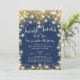 Beautiful Twinkle Little Star baby shower invitation featuring modern gold stars set on a blue background with trendy typography. Flip our boys baby shower invite over to view a coordinating back for an extra special touch.