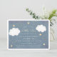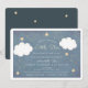 This cute "twinkle twinkle little star" baby shower invitation features blue chalkboard background with faux gold foil stars, and stitched clouds. The reverse side features faux gold foil star patterns on midnight blue / navy blue background. Change the background colour on the back and personalise for your needs. You can find more matching products at my store.
