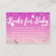 Dreamy twinkle twinkle little star theme baby shower bring a book insert card featuring hand lettered script that says "books for baby" on a pink ombre night sky background with faux silver glitter and white glowing stars. The card asks guests to bring a children's book instead of a card.