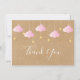 Twinkle twinkle little star thank you card, featuring white script thank you text with cute baby pink clouds and golden stars on strings. You can personalise with your own thank you message on the reverse, a perfect way to say thank you! Designed by Thisisnotme©