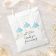 Twinkle twinkle little star boy baby shower favour bag featuring cute blue clouds and golden stars on strings, on a white background. Designed by Thisisnotme©