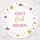 This cute and elegant twinkle twinkle little star" first birthday table confetti features a white and pink background with faux gold and pink glitter stars.