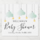 Twinkle twinkle little star baby shower design featuring cute mint green clouds and golden stars on strings, on a white background. Add your special celebration details in modern lettering. Designed by Thisisnotme©