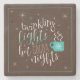 A modern Christmas stone coaster design with a steaming mug of hot chocolate and a line from my original poem that reads 'twinkling lights and hot cocoa nights'. The trendy text design in turquoise, cocoa and white is highlighted by stars on a chocolate brown background. Search ID593 to see all the coordinating products for this mix n' match design set.