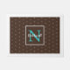 This beautiful doormat features a simple repeating pattern of a star shaped twinkling light and square central label on a chocolate brown background to hold your name and monogram. The modern color palette makes a popular choice to add to your Christmas decor. Search ID594 to see all the coordinating products for this mix n' match design set.