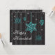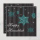 Beautiful Star of David and Dreidels hang from the night sky from jewelled beads. Stars and dreidels made up of jewish images.