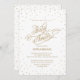Tiny little confetti stars twinkle and sparkle in a gold glitter effect around the edge of this simple and sweet white and gold baby shower invitation, with a gold glitter effect script reading, "Baby Shower". Perfect for a chic shower! Original artwork by Colleen Michele. Please note, there is not a real gold glitter or gold leaf effect on the stars and script; no actual glitter, gold leaf or metallic ink will be used in this invitation.