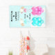 Twins baby shower decor featuring girl twin and boy twin beneath pink and blue balloon bouquets. To personalise, edit text to add names.