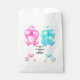 Creative twins baby shower thank you favour bags featuring twin girl and boy babies and blue and pink balloon bouquets. Edit text to add mother-to-be's name.