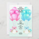 Adorable pink and blue twin baby shower invites for girl and boy twins featuring balloon bouquets.
