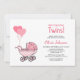 Twins Baby Shower Pink Balloons and Stroller Invitation