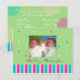 This is one of my popular designs. Green background with multicolor circles and matching stripes. I have used the sample for twins but can easily be used for sigletons as well. Can be used for boys or girls birth announcements.