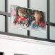 Twins birthday party banner for any age. Personalised with a photo, the script text "happy birthday", the age, the girl's or boy's name, and space at the bottom to add a message. To change the photo placement: click on the button to customise it further, click on "crop", and move the image.