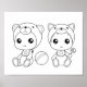 Twins Cat Bear Baby Jumpsuit Colouring Page Poster