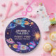 This outer space design for a twin siblings joint birthday party features two rocket ships, planets, the sun, comets, a UFO and lots of stars on a dark purple background in a watercolor style. You can customise all the text to suit your event. See the whole matching collection.