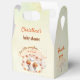 Two little pumpkins are on the way, cute Fall Halloween Twins Gender Neutral Unisex Baby Shower Medium Gable Favour Boxes featuring an adorable ghost holding two cute pumpkins on the fall-themed background with autumn leaves all in the light green, orange and brown shades. You can choose from 3 sizes of these gable favour boxes. Easily personalise the text. - Kate Eden Art