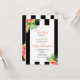 The flowers are set upon a black and white stripe with a subtle coral pink line to accentuate the tropical feel.