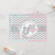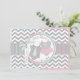 Chic grey and white chevron print with pink and blue contrast and a cute polka dot jumper with a blue tie and a pink tutu and 3D-look bow and ribbon for twins boy and girl baby shower invitation card.