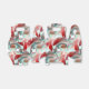 Twisted circular pieces in showy red to coral and salmon with silvery green parts.