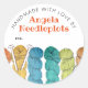 Colourful twisted yarn hanks or yarn skeins with knitting needles in hand drawn style on these "handmade with love" stickers for your knitting crafts business or for personal gifting.