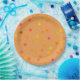 Paper Plates in our Twisty Polka Dot Spirals design in orange. Part of a versatile, decorative collection with yellow, green, orange as the primary color schemes - a collection featuring coordinated patterns and designs created to work together. The focus is on clean, balanced visuals that are easy to mix and match across many creative projects. Works well for year-round use and a wide variety of themes and occasions. Suitable for children, teens, and adults of all ages.