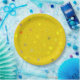 Paper Plates in our Twisty Polka Dot Spirals design in yellow. Part of a versatile, decorative collection with yellow, green, orange as the primary color schemes - a collection featuring coordinated patterns and designs created to work together. The focus is on clean, balanced visuals that are easy to mix and match across many creative projects. Works well for year-round use and a wide variety of themes and occasions. Suitable for children, teens, and adults of all ages.