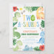 Make your child's birthday a prehistoric celebration with our Two A-Saurus Dino Birthday Invitation! With bright colours and a whimsical design, this invitation is sure to impress your guests and get them excited for the big day. Let your little one's love for dinosaurs shine with this fun and unique party invite.