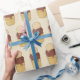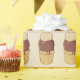 Ice cream cup icon with two balls seamless pattern on beige background.
