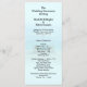 Tall, flat beach themed wedding program with beach chairs background. Easily customise for your marriage with text on both sides. Overall colour is sea blue green and is a perfect for seaside ceremonies and tropical marriages.