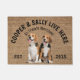 This welcome mat can be personalised with your dog’s name, the slogan can also be changed or you could use a picture of your own dog (make sure it's transparent). Text reads: Cooper & Sally Live Here…. All treats welcome.