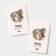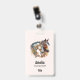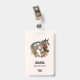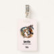 Name badge with an image featuring a pair of horses. Wearing decorative headbands. Surrounded by feathers and foliage.