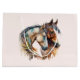 Gift bag with an image featuring a pair of horses. Wearing decorative headbands. Surrounded by feathers and foliage.
