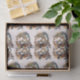 Tissue paper with an image featuring a pair of horses. Wearing decorative headbands. Surrounded by feathers and foliage.
