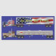 Two big rigs on one magnet featuring the original artwork of Rick Ellinger. Easily cut the two apart to create two separate magnets. One with "In God We Trust" American flag design on truck and trailer. The other with coffee and hot cocoa big rig tanker.